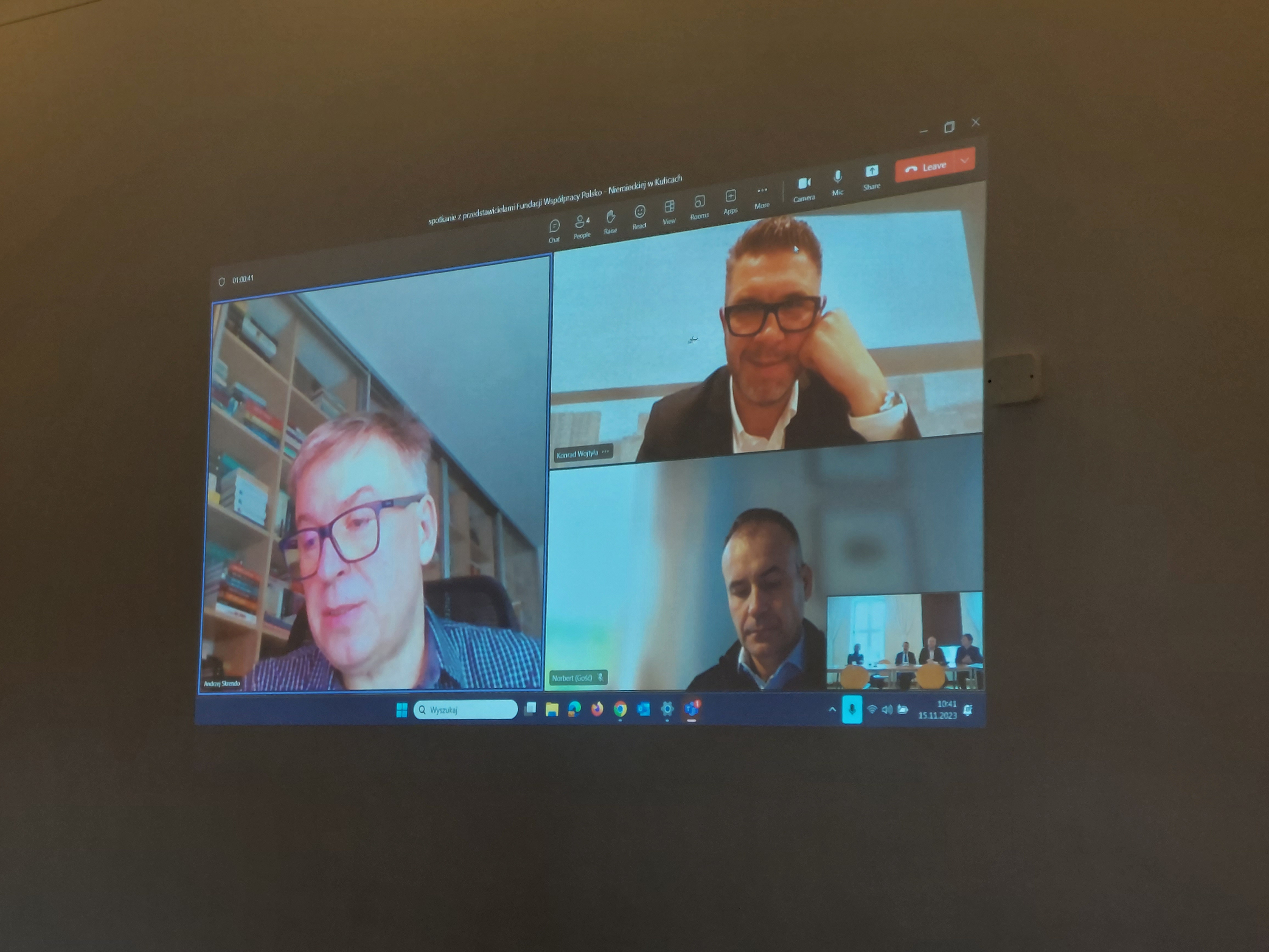 W dniu 15 listopada 2023 roku w MOBI w Kulicach mieliśmy przyjemność i zaszczyt gość przedstawicieli Fundacji Współpracy Polsko – Niemieckiej, w osobach dyrektorów Corneliusa Ochmanna i Krzysztofa Raka, oraz profesora Hieronima Gralę z Uniwersytetu Warszawskiego i Wojciecha Włodarskiego, prezesa Radia Szczecin. W spotkaniu uczestniczyli także dr Paweł Migdalski, adiunkt w Instytucie Historycznym US a w formule online prof. Andrzej Skrendo – prorektor ds. Nauki, dr Norbert Obrycki – pełnomocnik rektora ds. współpracy terytorialnej oraz dr Konrad Wojtyła – dyrektor Centrum Edukacji Medialnej i Interaktywności. Gospodarzy reprezentowali prof. Jörg Hackmann, dyrektor MOBI i jego zastępca Kamila Latocha oraz Teresa Kania kierownik obiektu. W trakcie spotkania omówione zostały możliwe dziedziny współpracy między Fundacją a Uniwersytetem Szczecińskim poprzez wspólną realizację projektów. Poza rozmowami goście zwiedzili Ośrodek i a dzięki uprzejmości Pana dr Pawła Migdalskiego, który wcielił się w rolę przewodnika, poznali historię zespołu dworsko – parkowego w Kulicach.